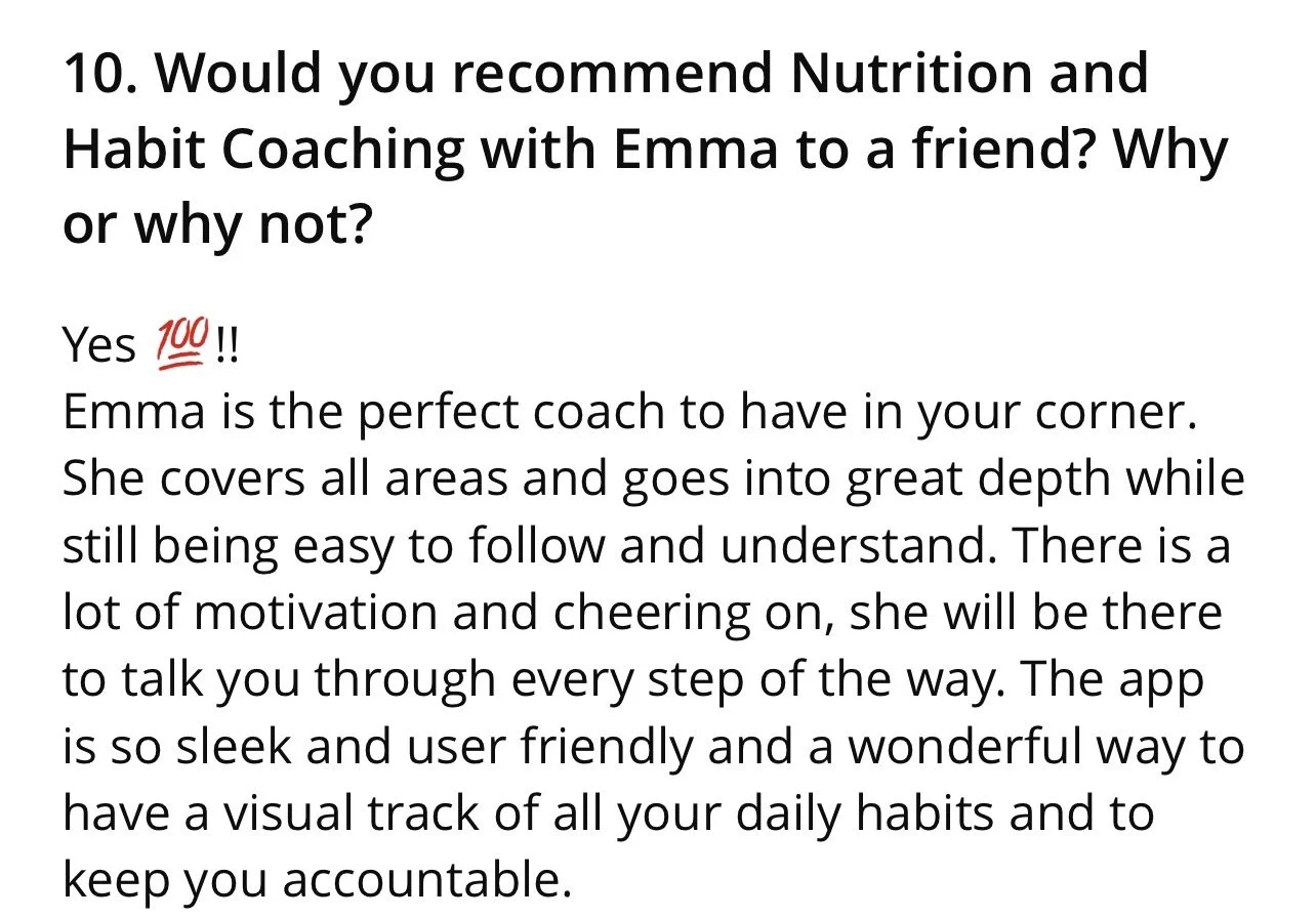 You’re not doing this alone. You’ll have direct access to me as your nutrition coach inside with in-app messaging support, group form and monthly in depth check-in.